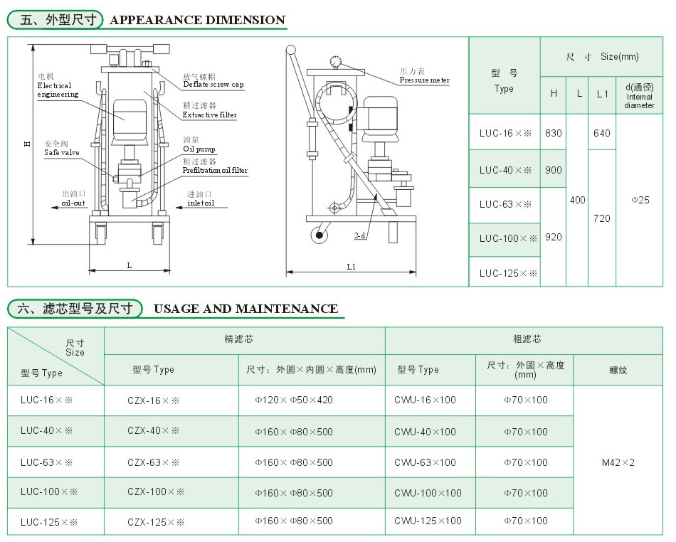 LUC濾油車吸油過濾器不僅適合于各類液壓油、潤滑油的過濾凈化,而且廣泛用于電站、電廠、變電工區(qū)、石油、化工、冶金、鋼鐵、交通、拖拉機站、國防工業(yè)等單位過濾凈化絕緣油、透平油、潤滑油、液壓油、機械油等液體油液中的雜質(zhì)微粒,能達到廢油再生的目的。