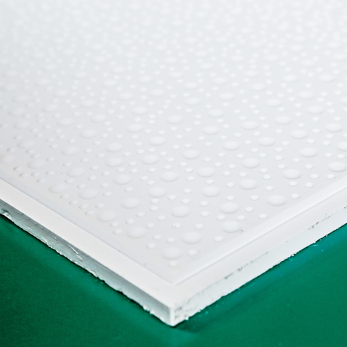 高晶天花板是以建筑石膏為基材,加入輕質(zhì)填料、適量的增強(qiáng)纖維 (不含石棉)和一定量的特種外加劑經(jīng)攪拌、澆注成型、烘干等工藝而制成。